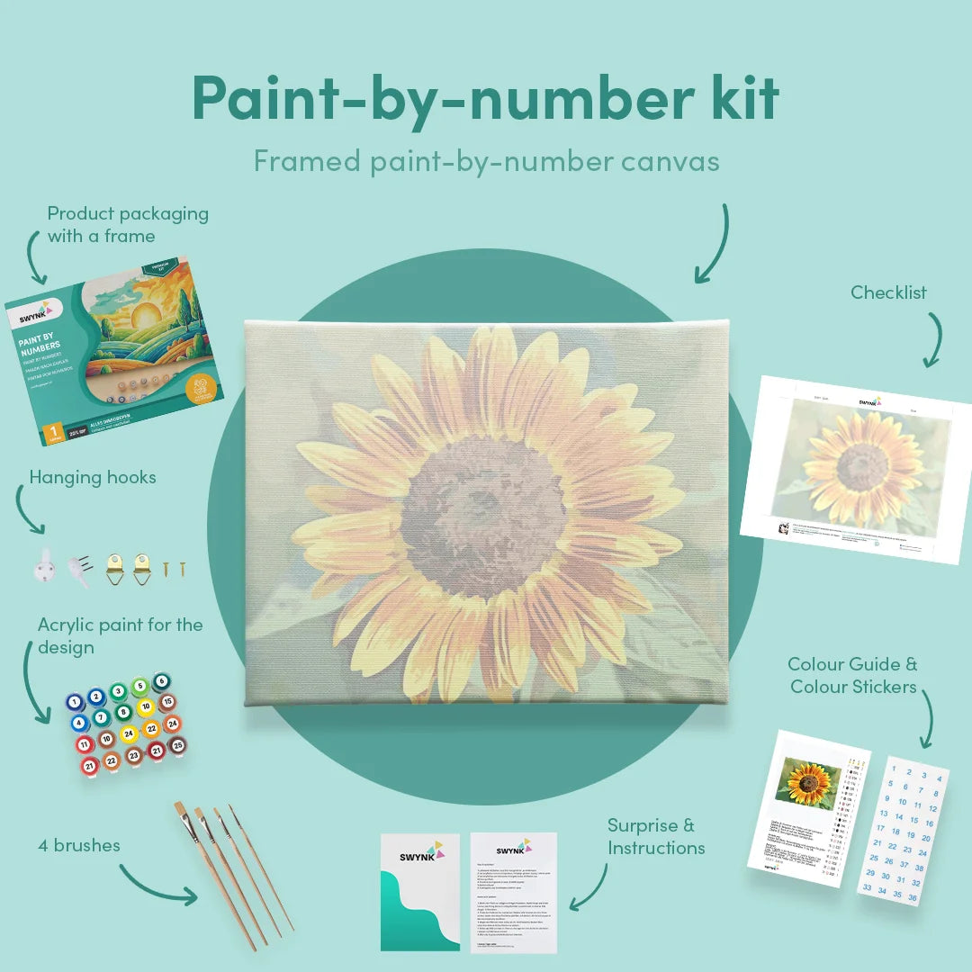 At Swynk, we enable you to paint by numbers on canvas. This means sections contain numbers indicating which color to use. This way you can create paintings like Van Gogh made, without needing even a fraction of his talent.