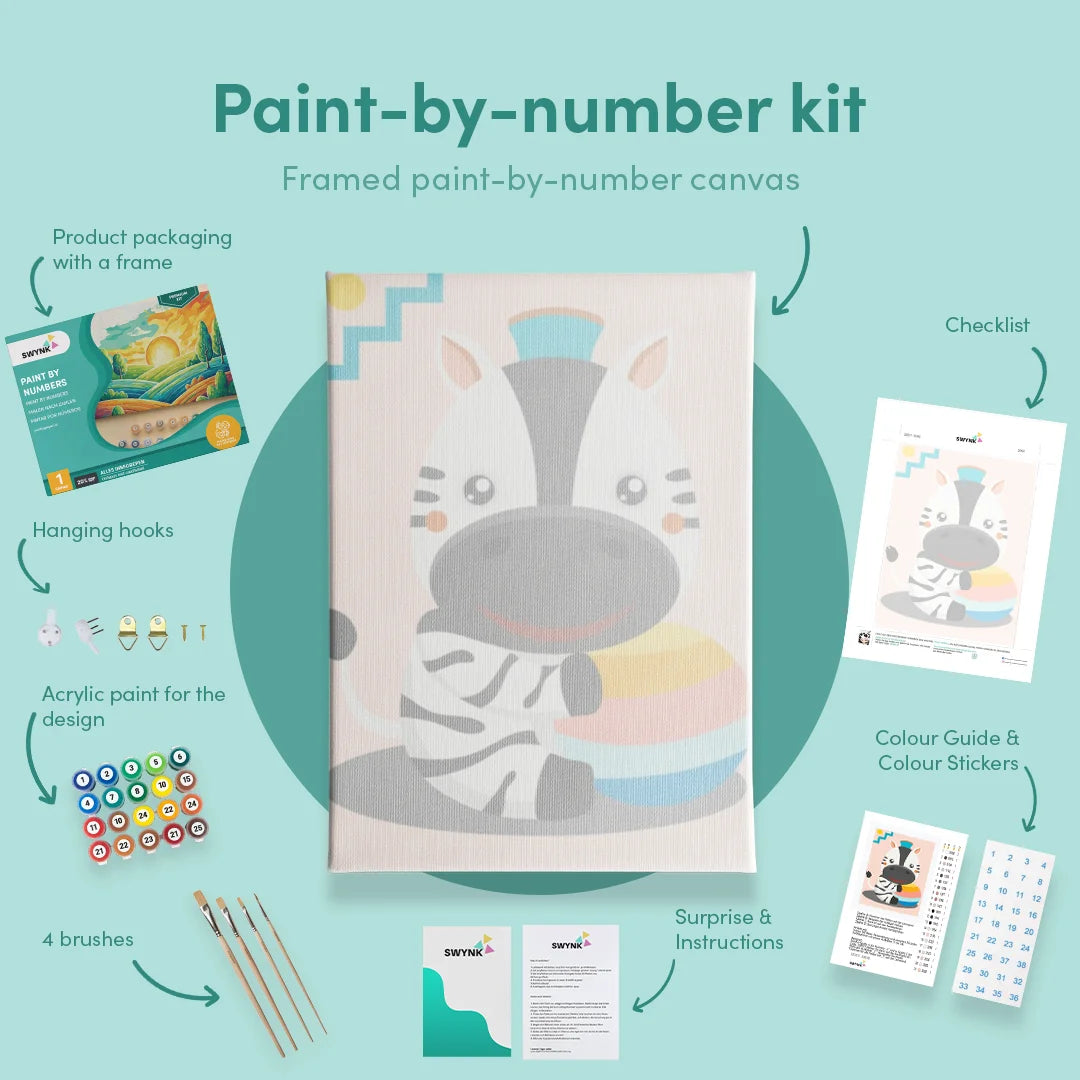 The paint by numbers Zebras collection from Swynk. Paint by numbers is also known as painting by numbers or simply paint by numbers. Can't find your favorite Zebras design in our collection? Take advantage of our custom photo option! Simply find your preferred image through Google and upload it directly on our website.