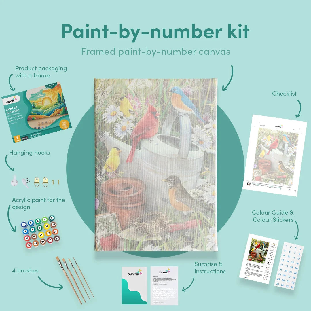 The paint by numbers Birds collection from Swynk. Paint by numbers is also known as painting by numbers or simply paint by numbers. Can't find your favorite Birds design in our collection? Take advantage of our custom photo option! Simply find your preferred image through Google and upload it directly on our website.