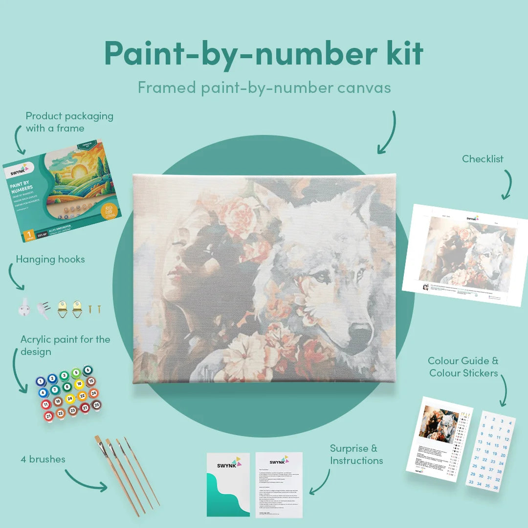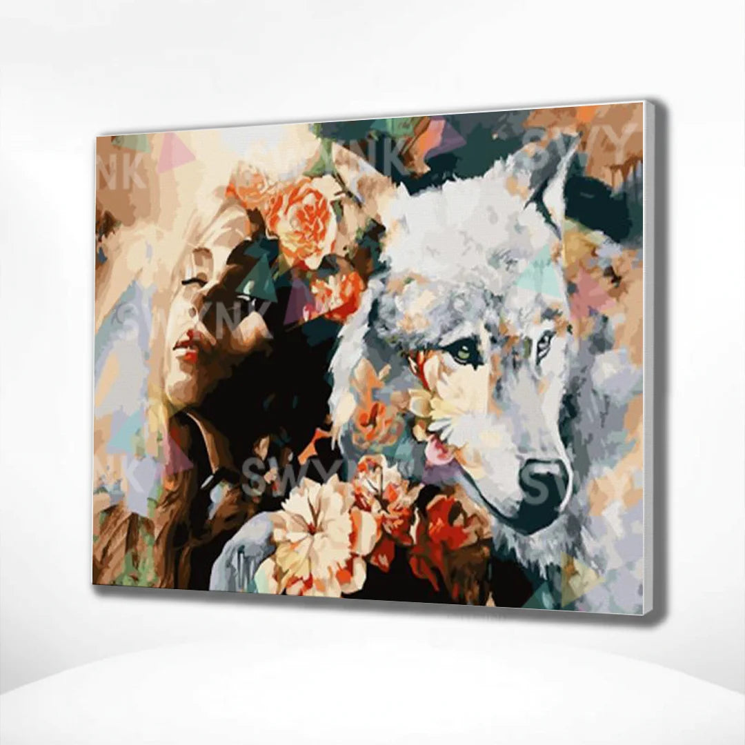 Explore the paint by numbers wolves collection from Swynk. Looking for a paint by numbers woman with wolf, a paint by numbers colorful wolf or perhaps a paint by numbers tigers and a paint by numbers lions is perfect for you! Paint by numbers is also known as painting by numbers or simply paint by numbers. Can't find your preferred wolf image? Take advantage of our custom photo option! Search for your favorite photo on Google and upload it through our website.
