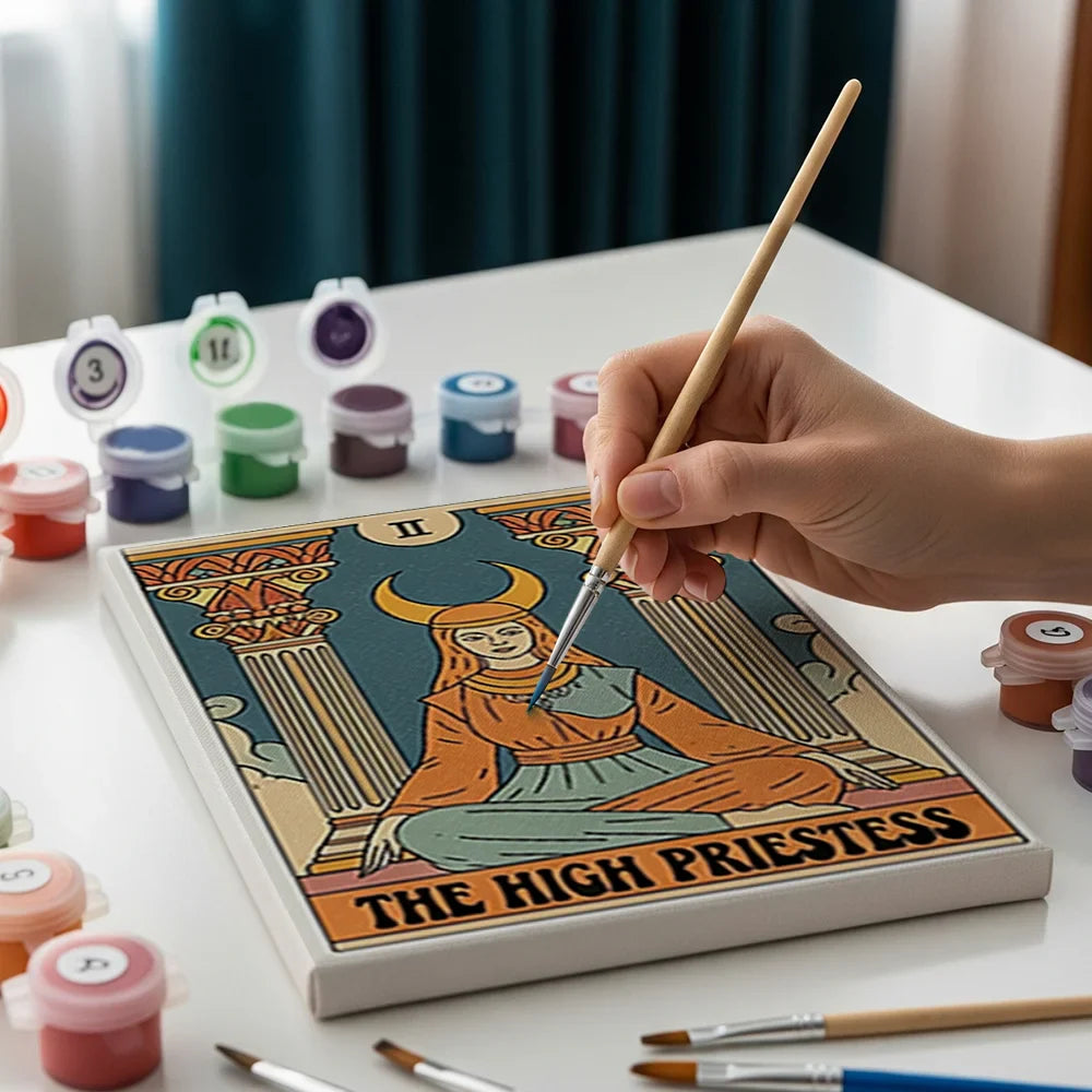 Få liv i Tarot Vibe Collection - Paint by Numbers Mini med dette smukke minisæt. Perfekt til et afslappende kreativt øjeblik, alt er inkluderet og ideel til en ny kreativ hobbyeftermiddag!
