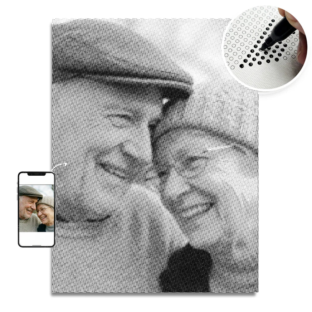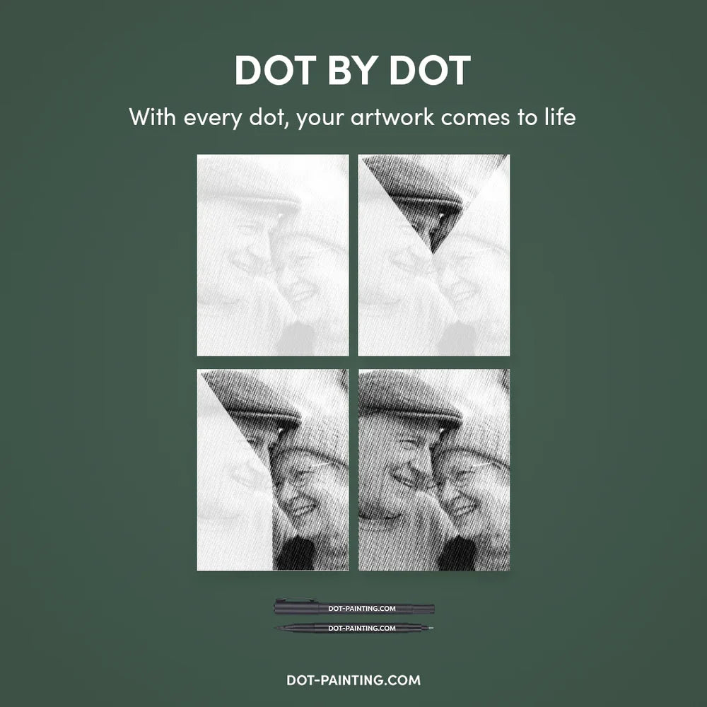 Turning your favorite photo into a sparkling work of art is incredibly easy! Use our custom generator to transform your personal picture into a detailed Dot Painting template. You can choose from 12 different sizes, ranging from 8x12" (20x30cm) to 20x28" (50x70cm).