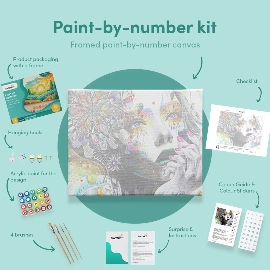 ✔ Alles, was Sie brauchen: Premium-Leinwandbild, Pinsel, Acrylfarbe und eine Vorlage auf A3-Papier