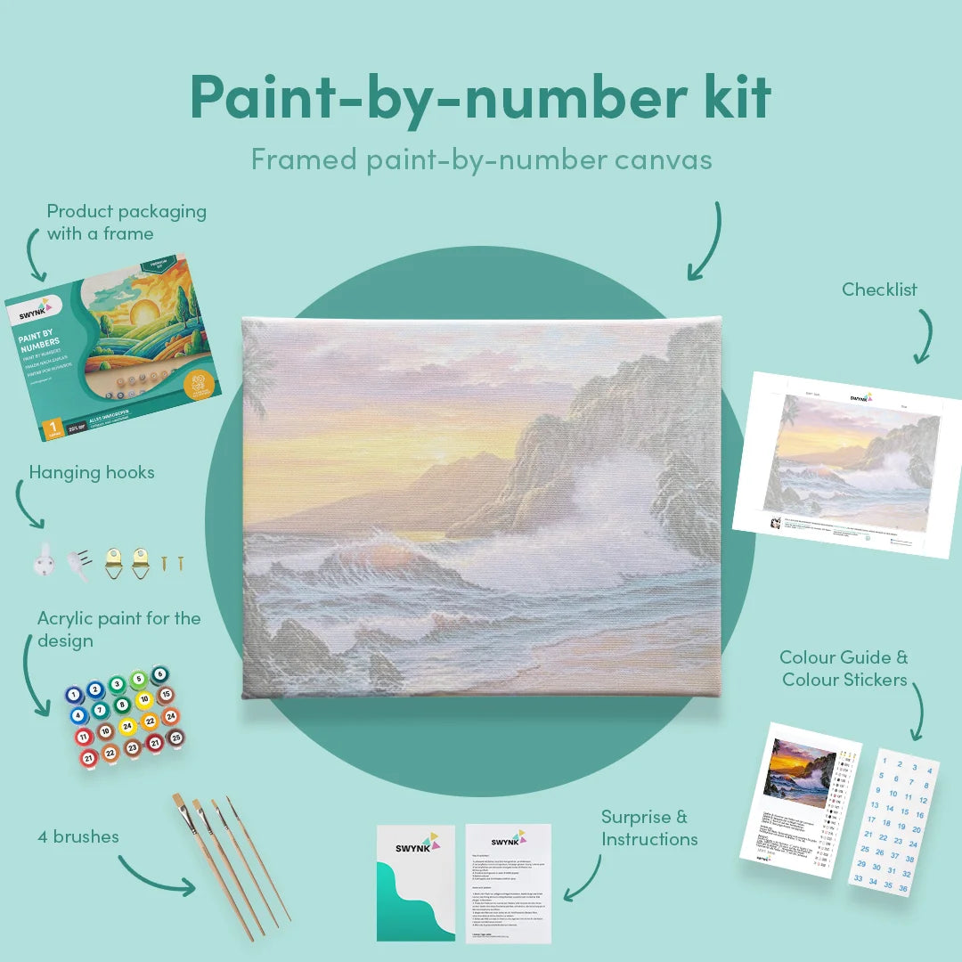 ✔ Alle Materialien: Premium-Leinwand, Pinsel, Acrylfarbe und ein Muster auf A3-Papier