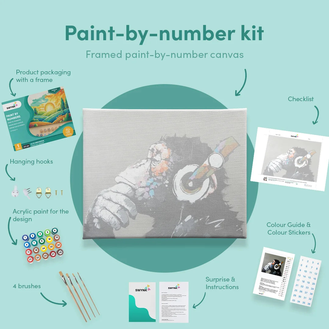 At Swynk, we show you everything you can paint by numbers. This includes paintings and artwork in black and white, as well as in color and featuring animals and other delightful subjects. Get inspired online and work with black and white to create stunning designs.