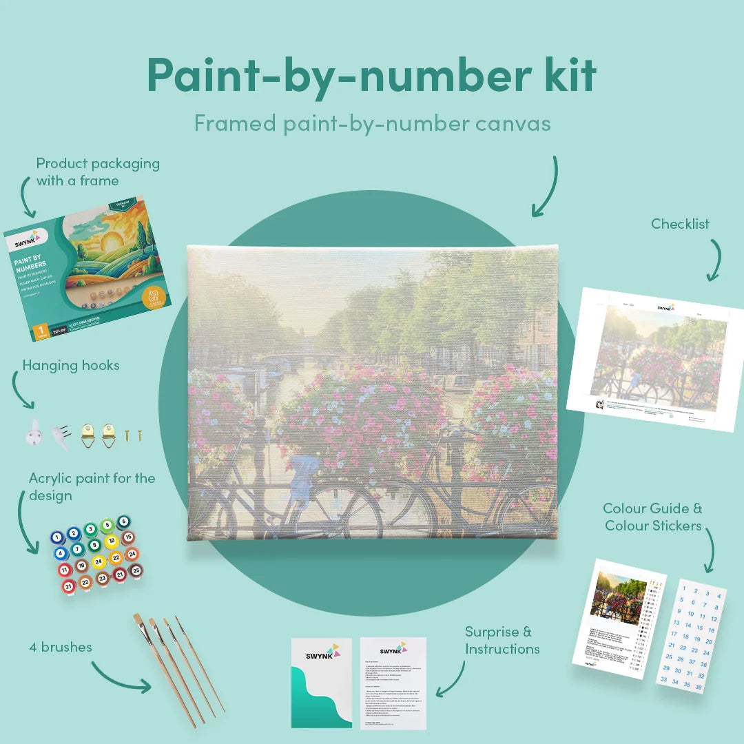 ✔ Alle benodigdheden: Premium canvas, penselen, acrylverf en een voorbeeld op A3 papier