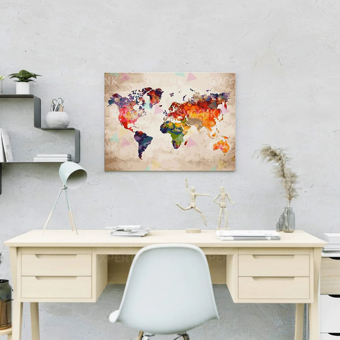 Schilderen met getallen Gekleurde wereldkaart