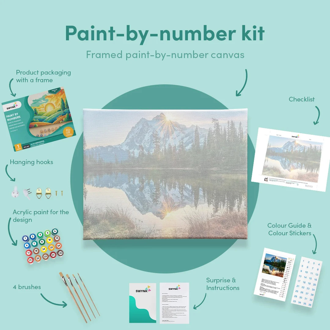 ✔ Alle benodigdheden: Premium canvas, penselen, acrylverf en een voorbeeld op A3 papier