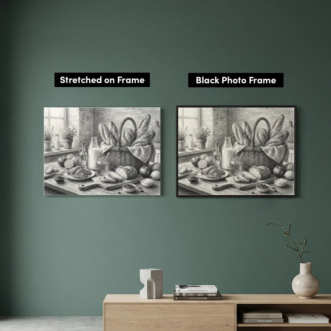 Premium Canvas: High-quality canvas featuring the Bread Basket pattern. We ship it rolled in a sturdy tube, so you never have to deal with annoying creases.