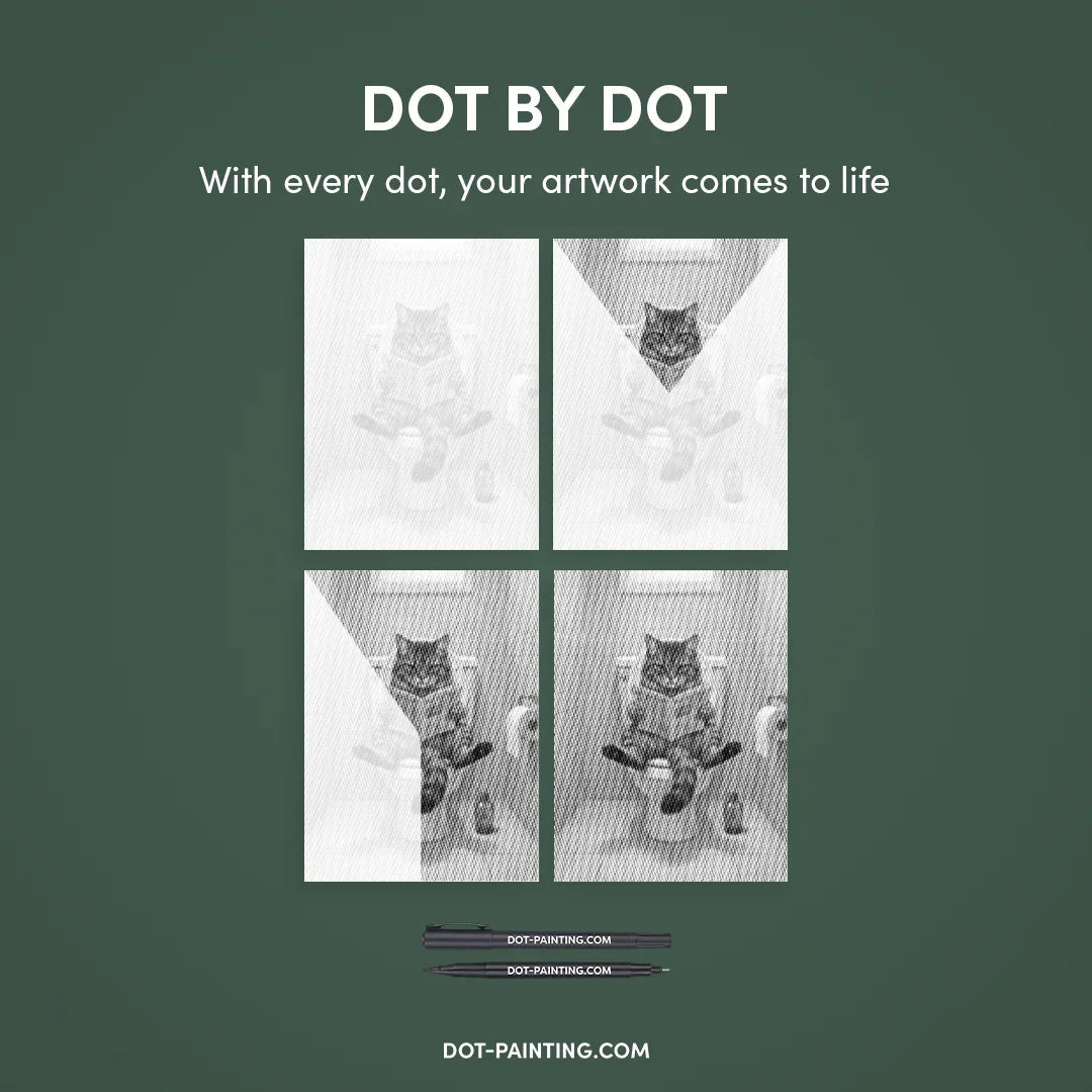 With Dot Painting, you use high-quality markers to bring the Cat on The Toilet Dot Painting kit to life, one dot at a time. It’s cleaner, easier, and incredibly satisfying.