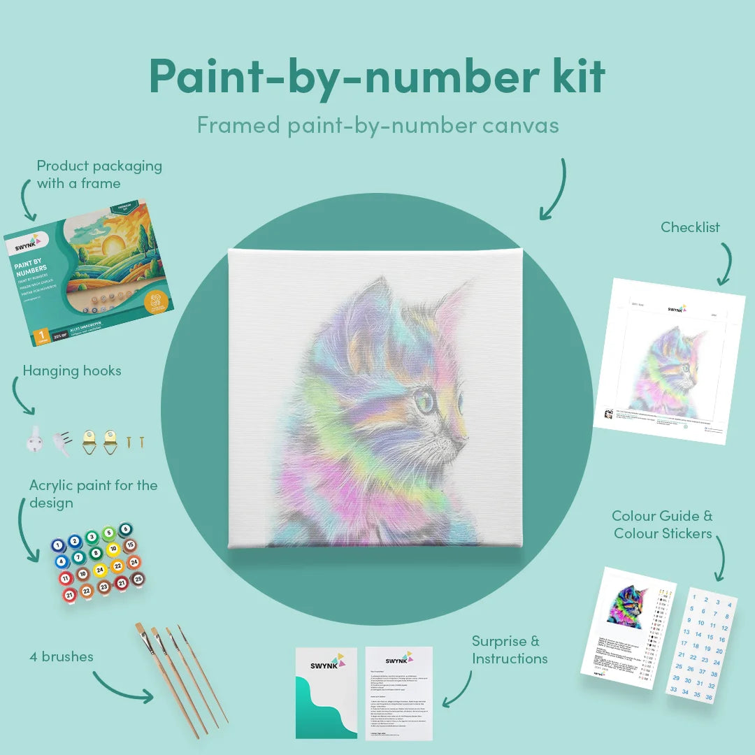 ✔ Wszystkie niezbędne rzeczy: płótno premium, pędzle, farba akrylowa i przykład na papierze A3