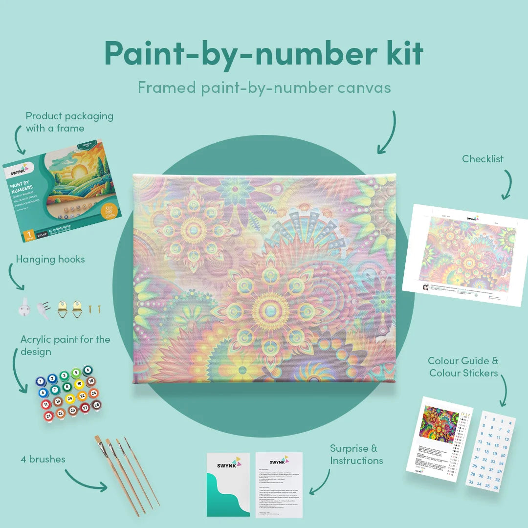 ✔ Wszystkie niezbędne rzeczy: płótno premium, pędzle, farba akrylowa i przykład na papierze A3