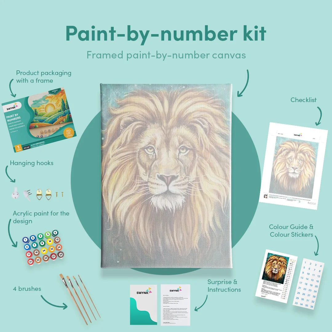 ✔ Wszystkie niezbędne rzeczy: płótno premium, pędzle, farba akrylowa i przykład na papierze A3