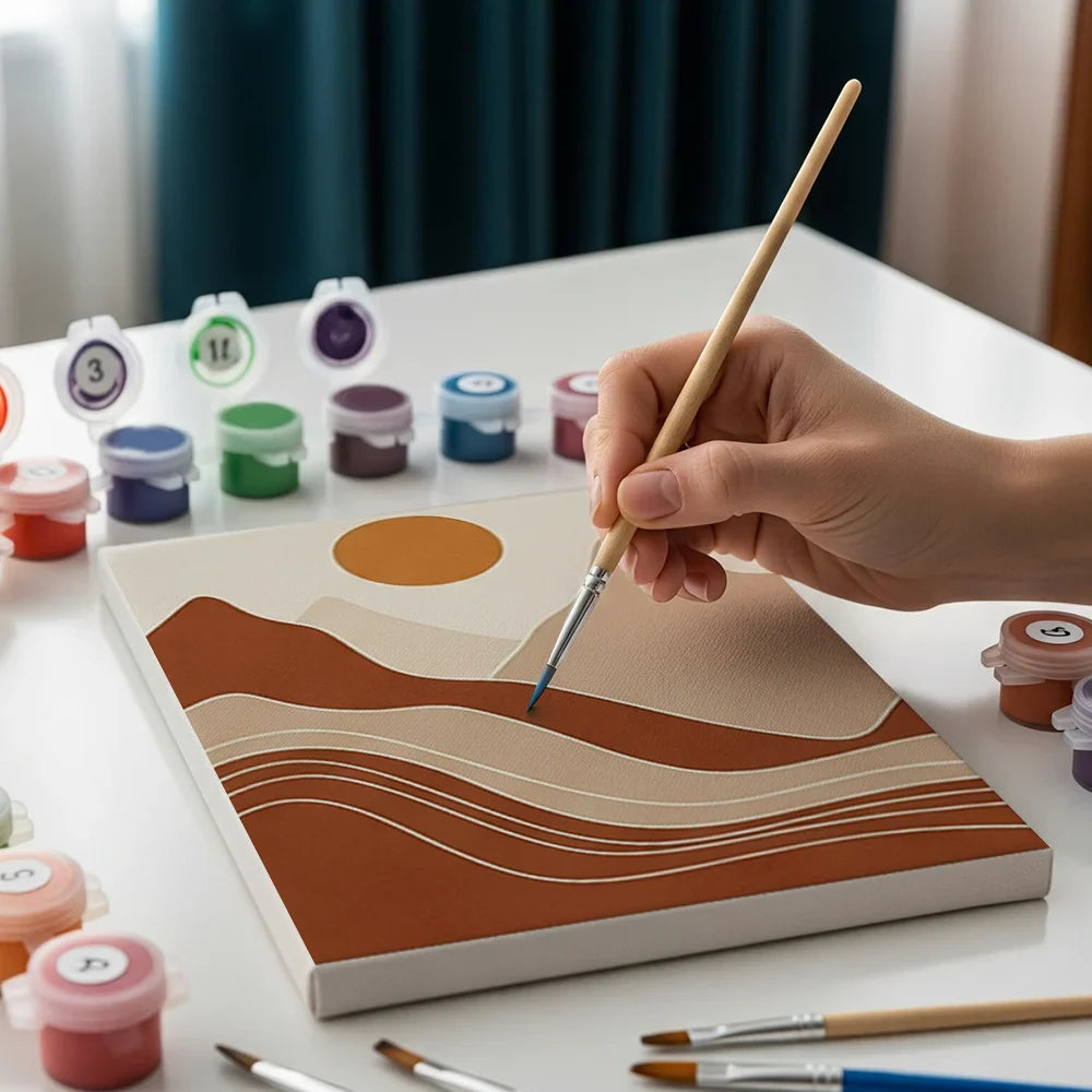 This Boho Line Art & Nature mini set from our Painting by numbers mini collection is ideal as a gift, to make yourself and then hang on the wall or in a child's bedroom. The compact size of 15x20cm makes it possible to create a beautiful work of art in 2-3 hours, without spending an entire evening on it.