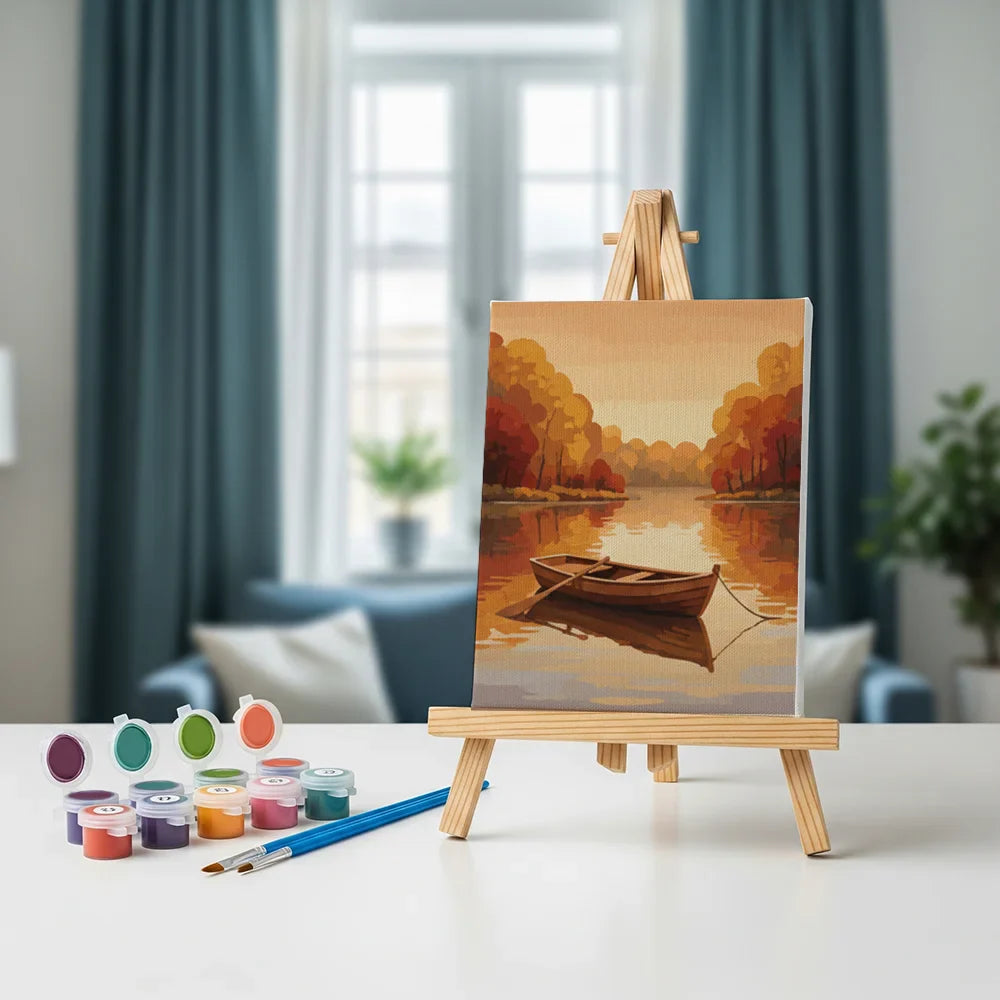 This Mild Early Autumn mini set from our Painting by numbers mini collection is ideal as a gift, to make yourself and then hang on the wall or in a child's bedroom. The compact size of 15x20cm makes it possible to create a beautiful work of art in 2-3 hours, without spending an entire evening on it.