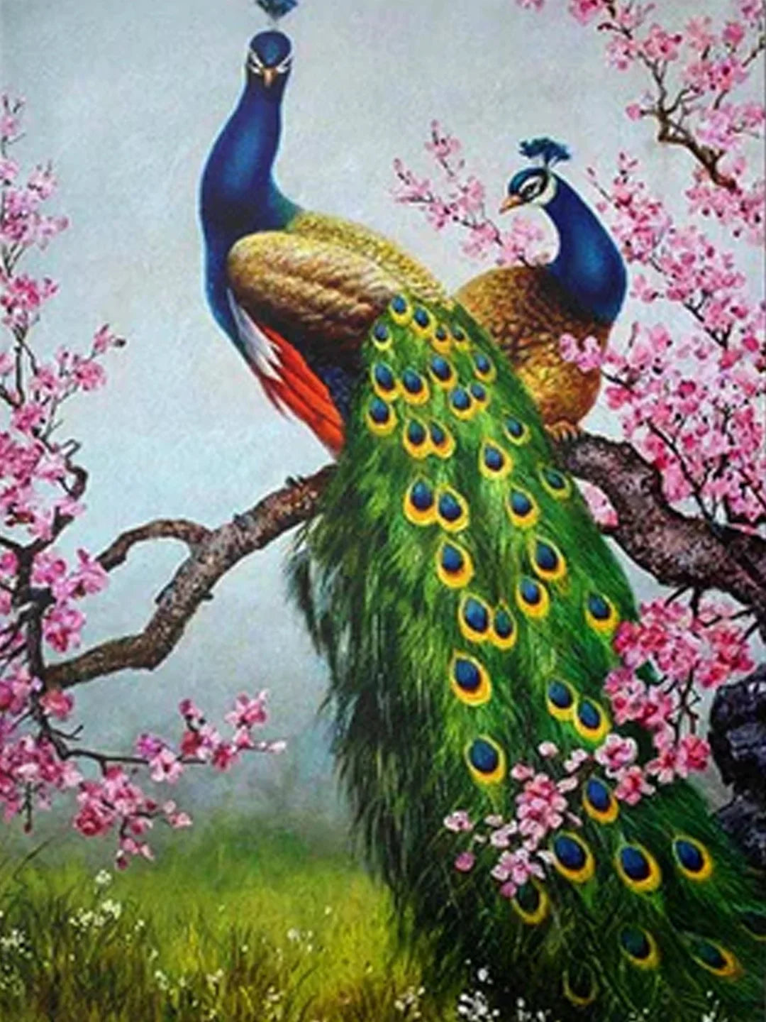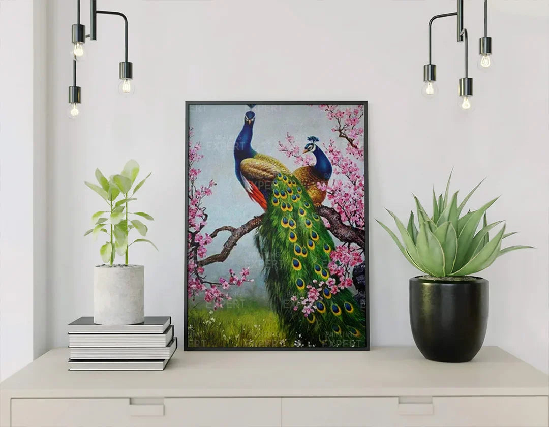 Painting by numbers Peacocks with Pink Flowers