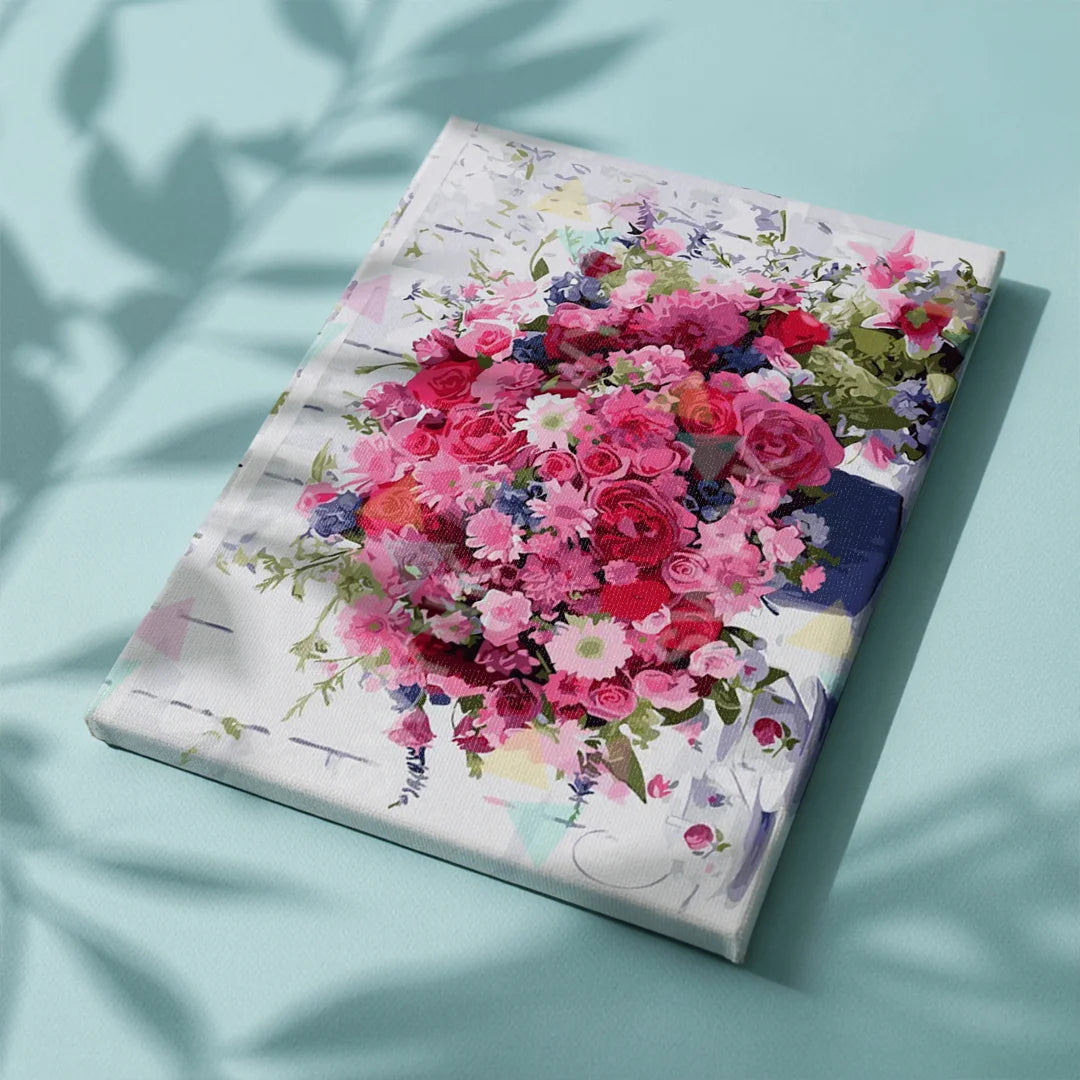 Painting by numbers Pink Flowers with Coffee Cups