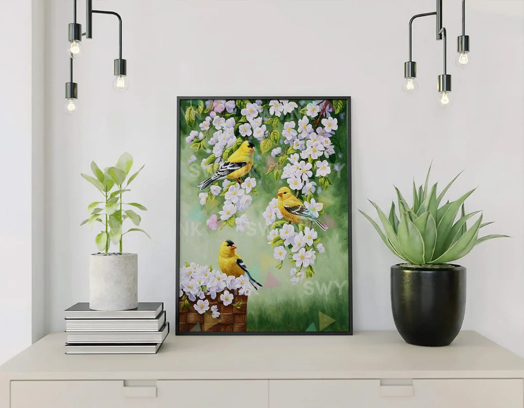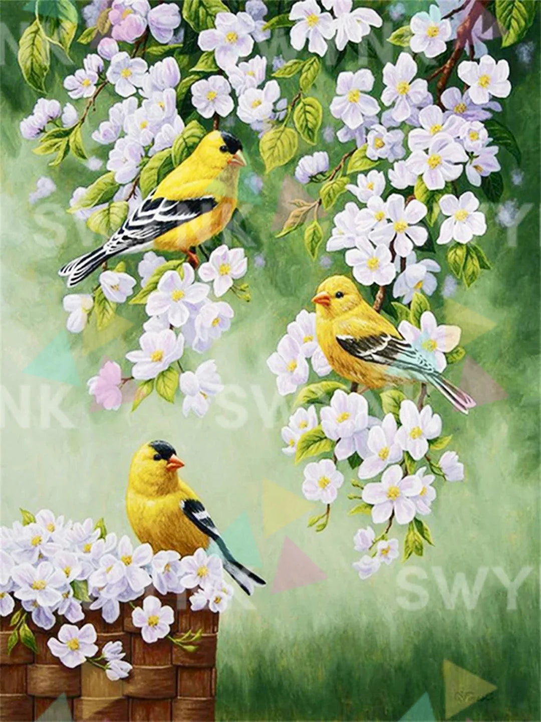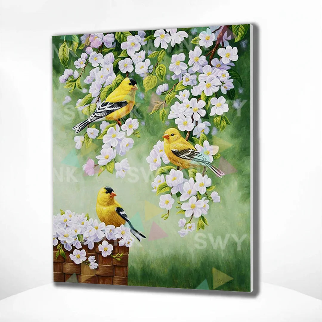 Painting by numbers Yellow Birds with White Flowers