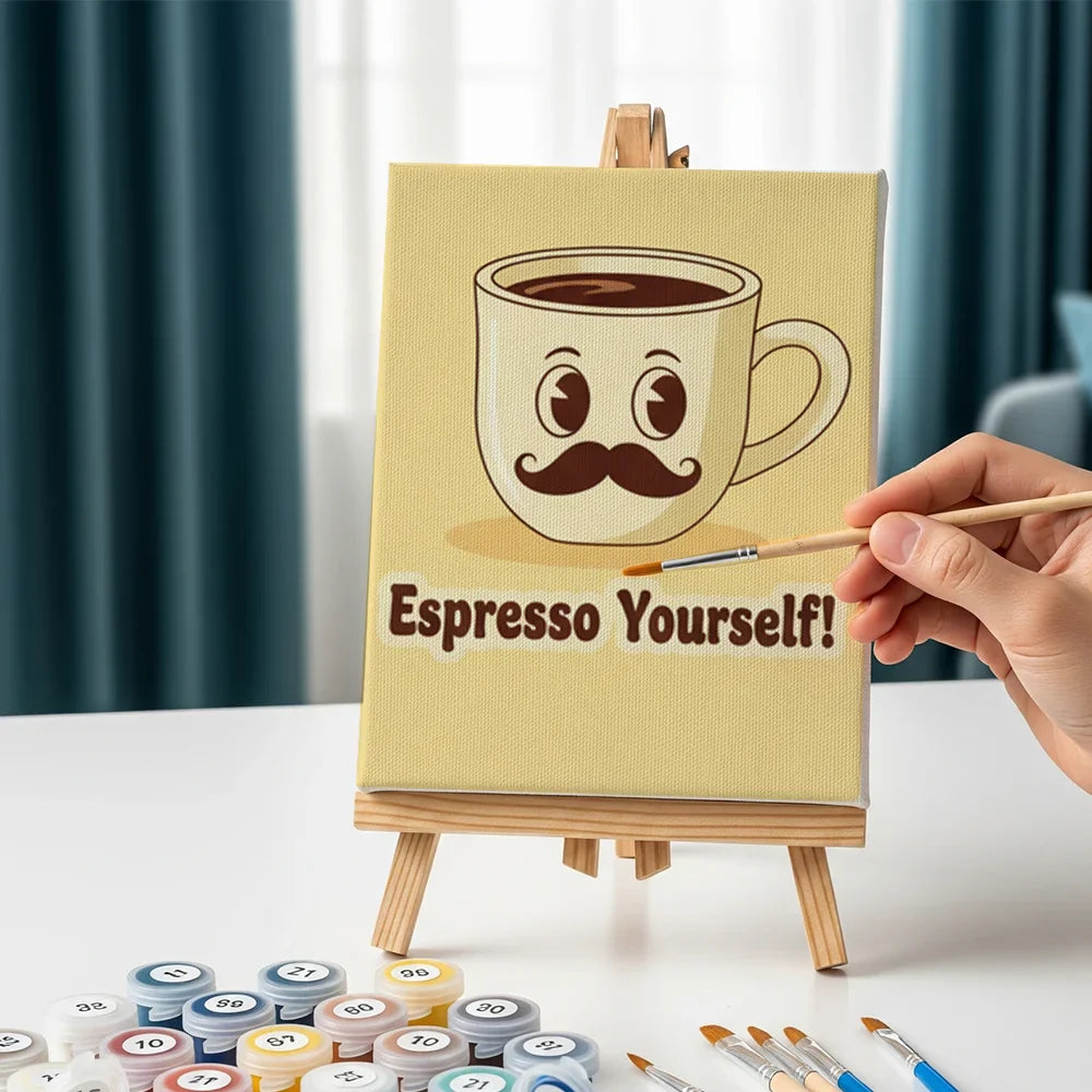 This Retro Kitchen Fun mini set from our Painting by numbers mini collection is ideal as a gift, to make yourself and then hang on the wall or in a child's bedroom. The compact size of 15x20cm makes it possible to create a beautiful work of art in 2-3 hours, without spending an entire evening on it.