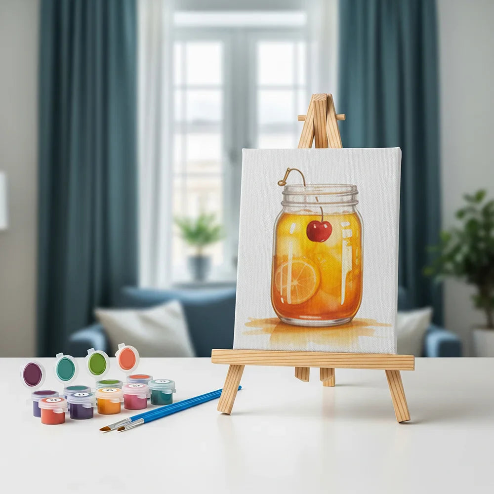 This Sip & Splash mini set from our Painting by numbers mini collection is ideal as a gift, to make yourself and then hang on the wall or in a child's bedroom. The compact size of 15x20cm makes it possible to create a beautiful work of art in 2-3 hours, without spending an entire evening on it.